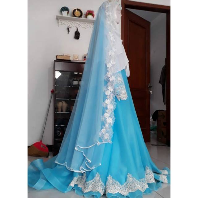 Baju pengantin warna biru langit.
